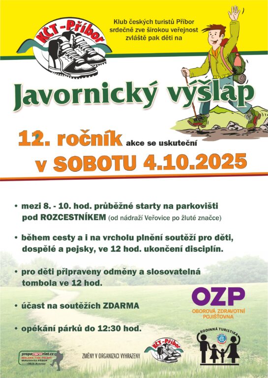 Klub Českých turistů Příbor pořádá 11. října 2025 turistický výlet vlakem do Hostýnských vrchů na Kelčský Javorník