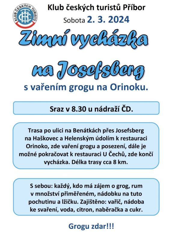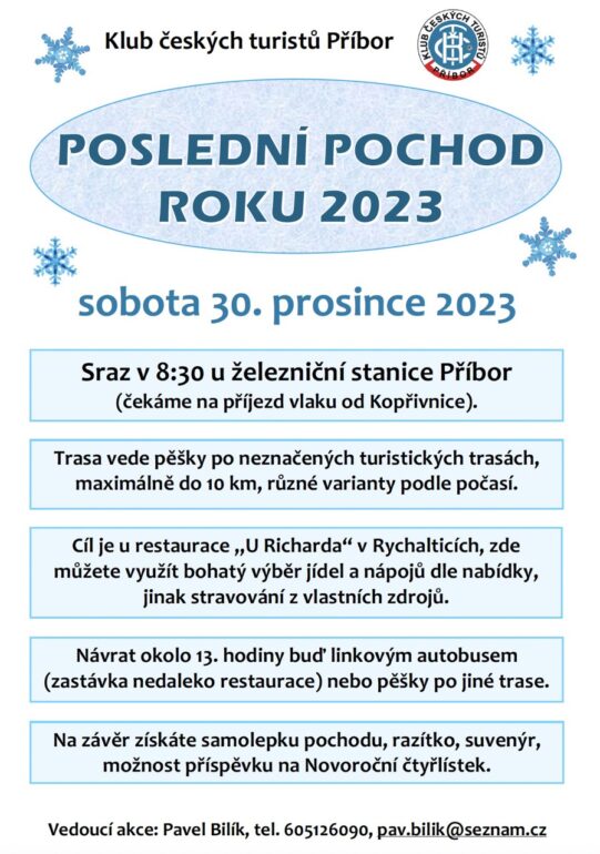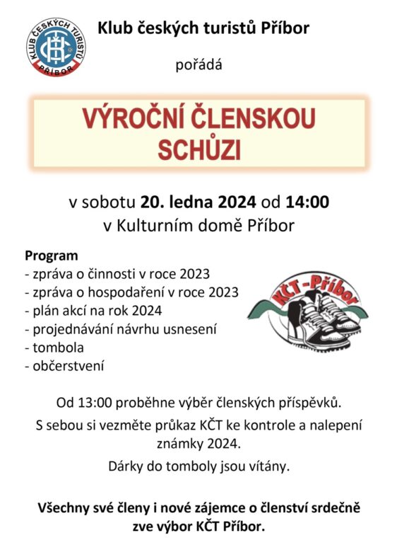 Klub Českých turistů Příbor pořádá dne 30.11.2023 v 17.00 hodin v Restauraci U Čápa — Promítání fotek z turistických akcí za rok 2023.